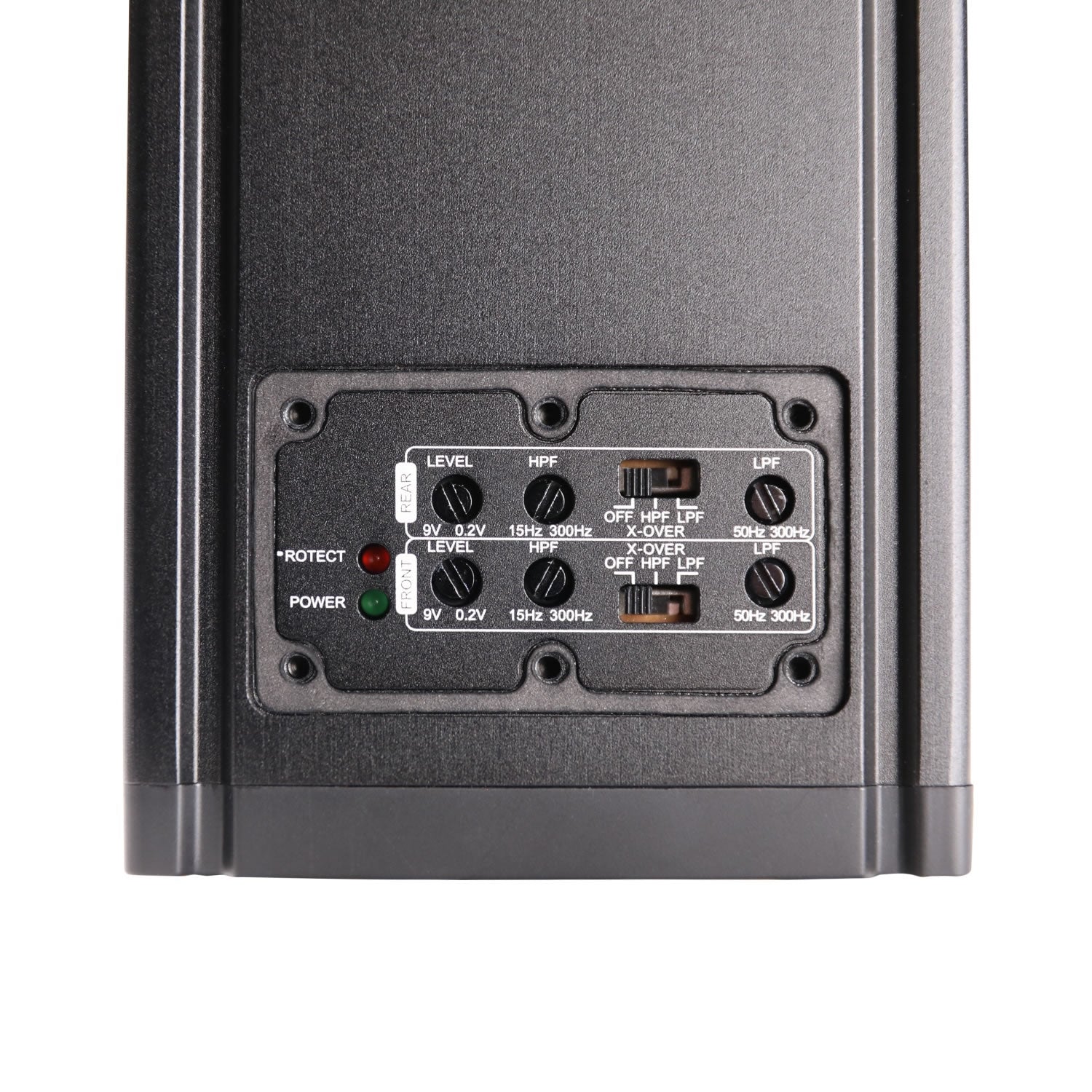 - Variable electronic crossovers (High-Pass: 15Hz–300Hz, Low-Pass: 50Hz–300Hz)