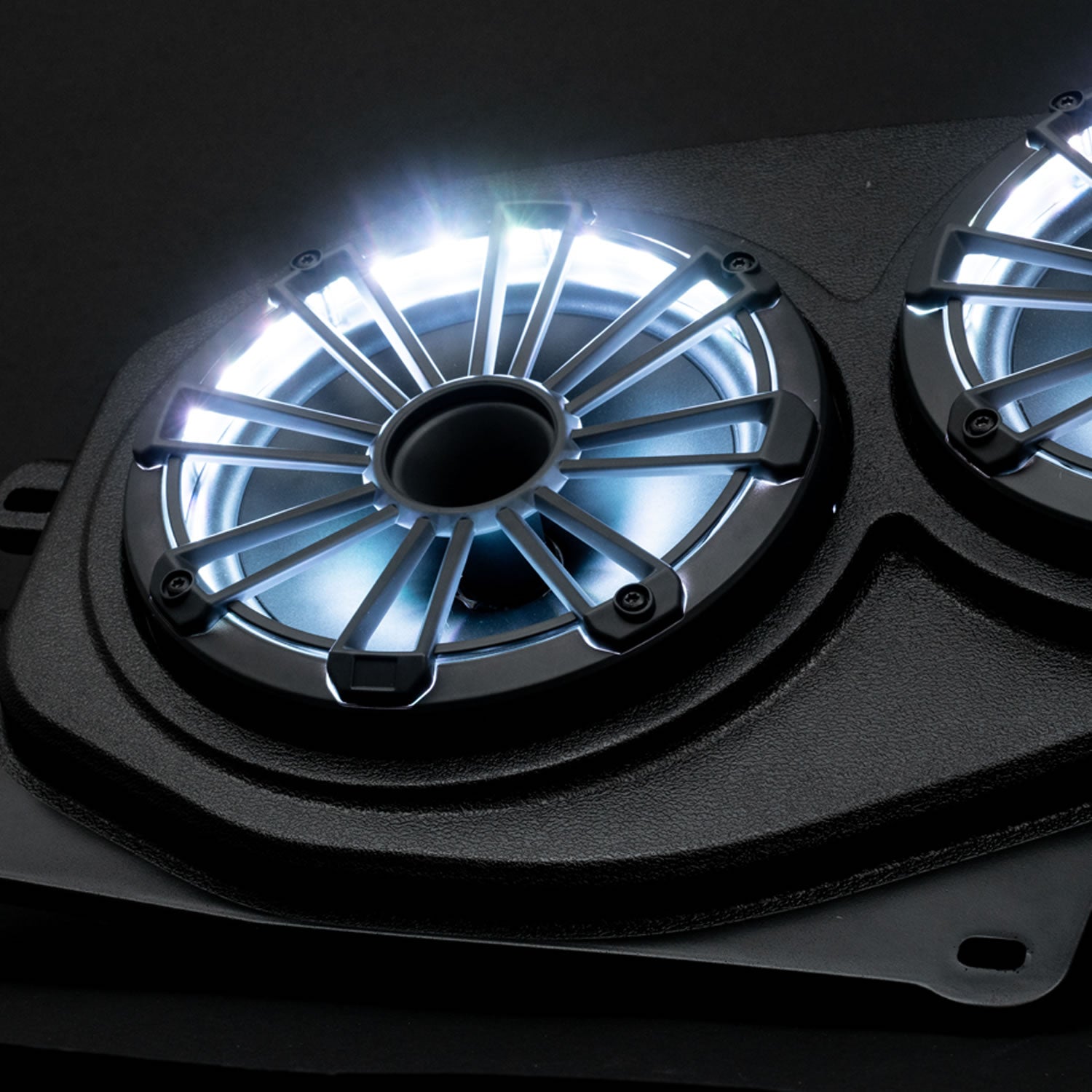 Built-in RGB lighting shines evenly through translucent grilles, allowing you to customize your Jeep’s interior atmosphere.